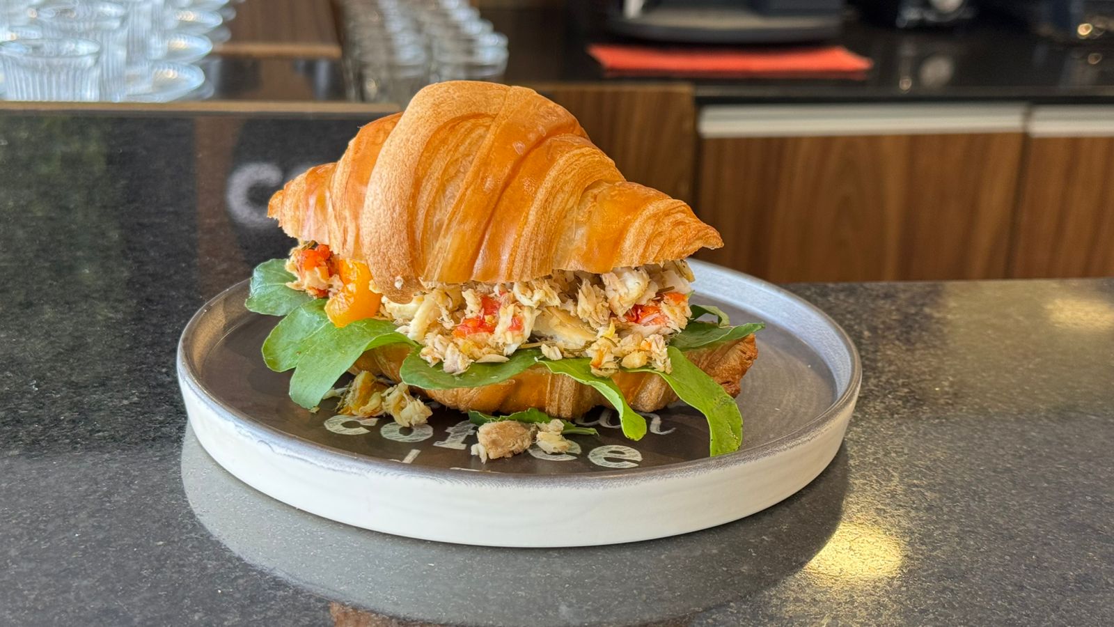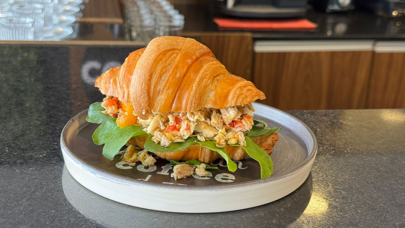 Croissant de tilápia com tomate e rúcula, crocante por fora e leve por dentro! Meu Deus!!!! Divino!