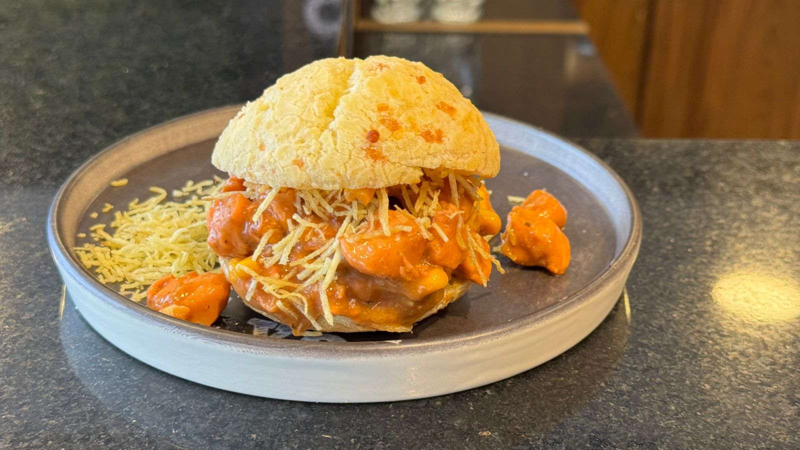 Pão de queijo com strogonoffe! Gente é sério! muito bom!!!!